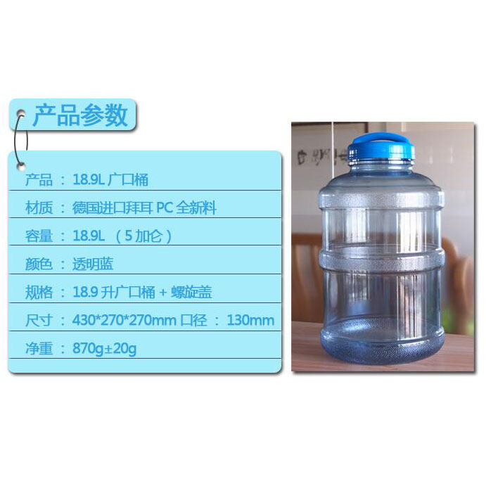 型號:食品級大口5加侖PC水桶,配蓋子。