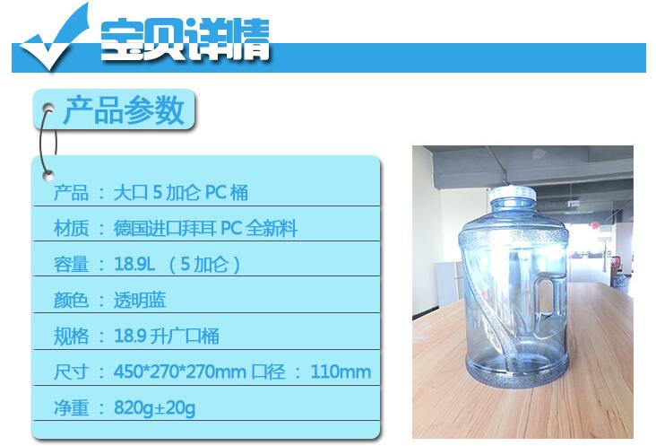 食品級寬口大口5加侖PC水桶戶外車載儲水器螺口18.9升飲水桶