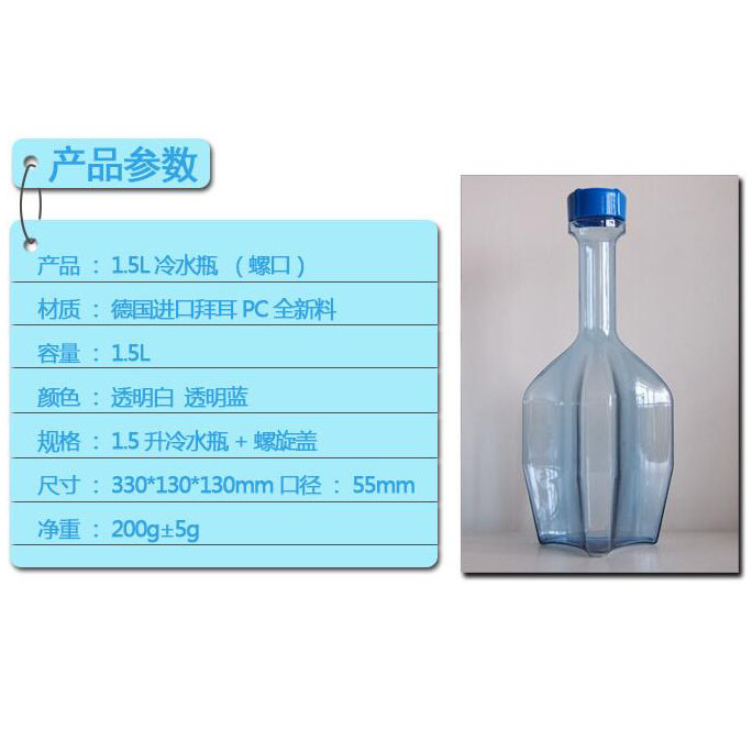 • 產(chǎn)品概述: 食品級(jí)1.5升冷水瓶,螺旋口