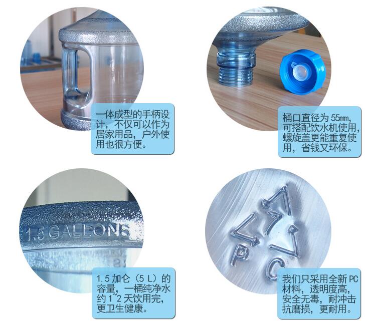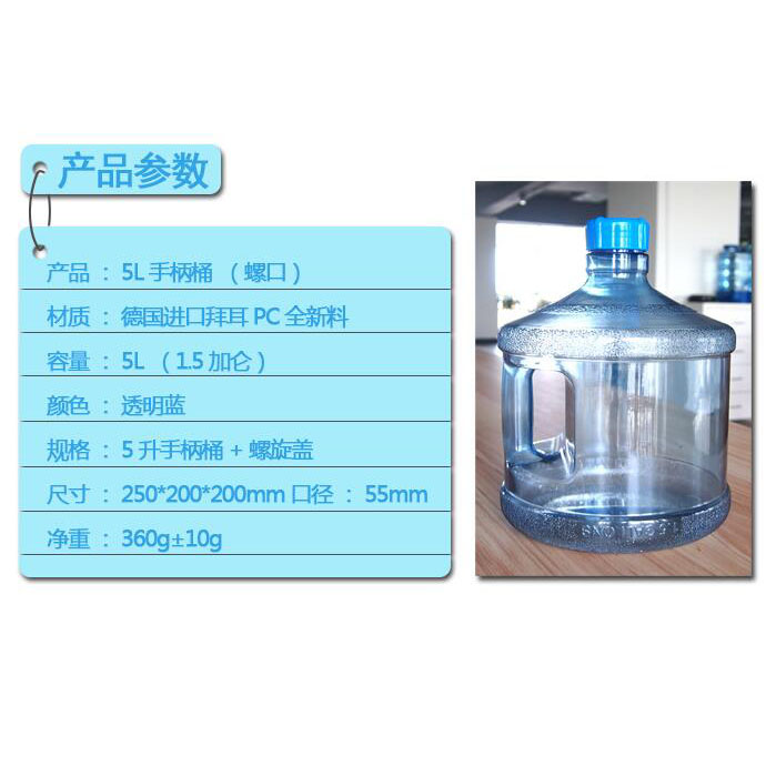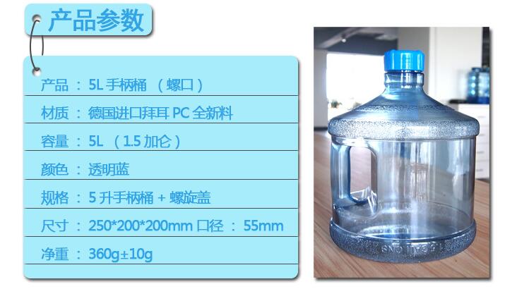型號:食品級手提5L螺紋口PC飲水桶(配蓋,食品級硅膠拉環(huán)、食品級墊圈)