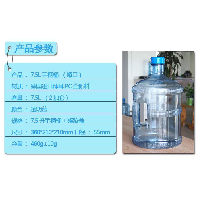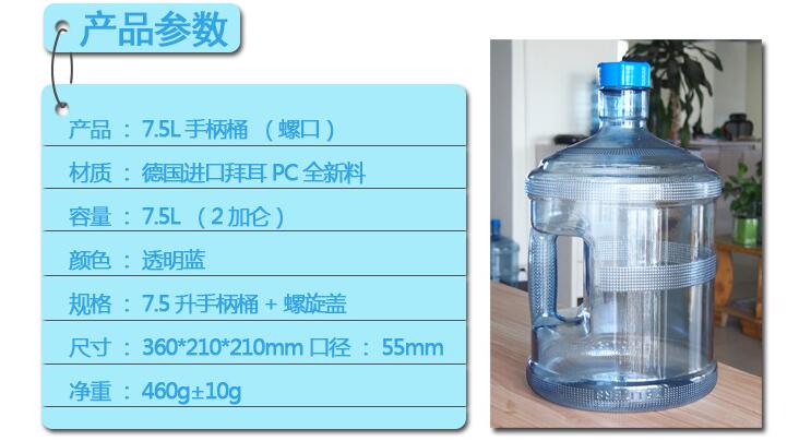 升級(jí)版食品級(jí)手提2加侖螺旋口PC儲(chǔ)水桶德國(guó)拜爾全新PC料7.5L