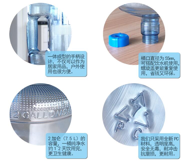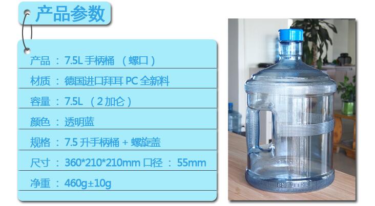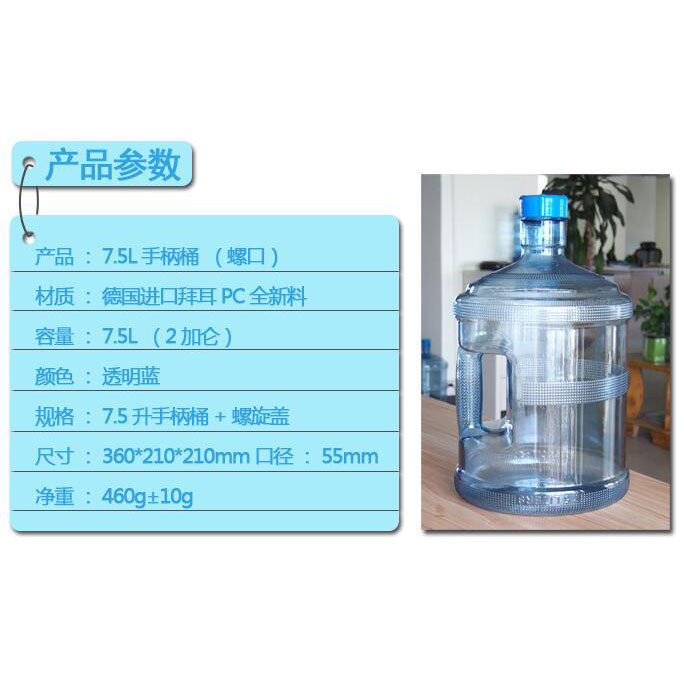 型號:食品級2加侖螺紋口PC飲水桶(帶手柄)。升級版。