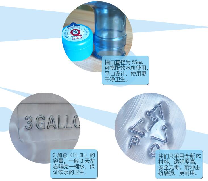 食品級 標(biāo)準(zhǔn)3加侖PC塑料飲水桶(標(biāo)準(zhǔn))不帶手柄 進口全新PC料